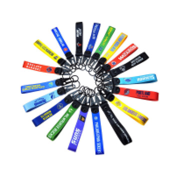 สายคล้องข้อมือสั้นสำหรับเล่นกีฬาทำจากโพลีเอสเตอร์พร้อมพวงกุญแจโลหะสำหรับพวงกุญแจกีฬาและพวงกุญแจ